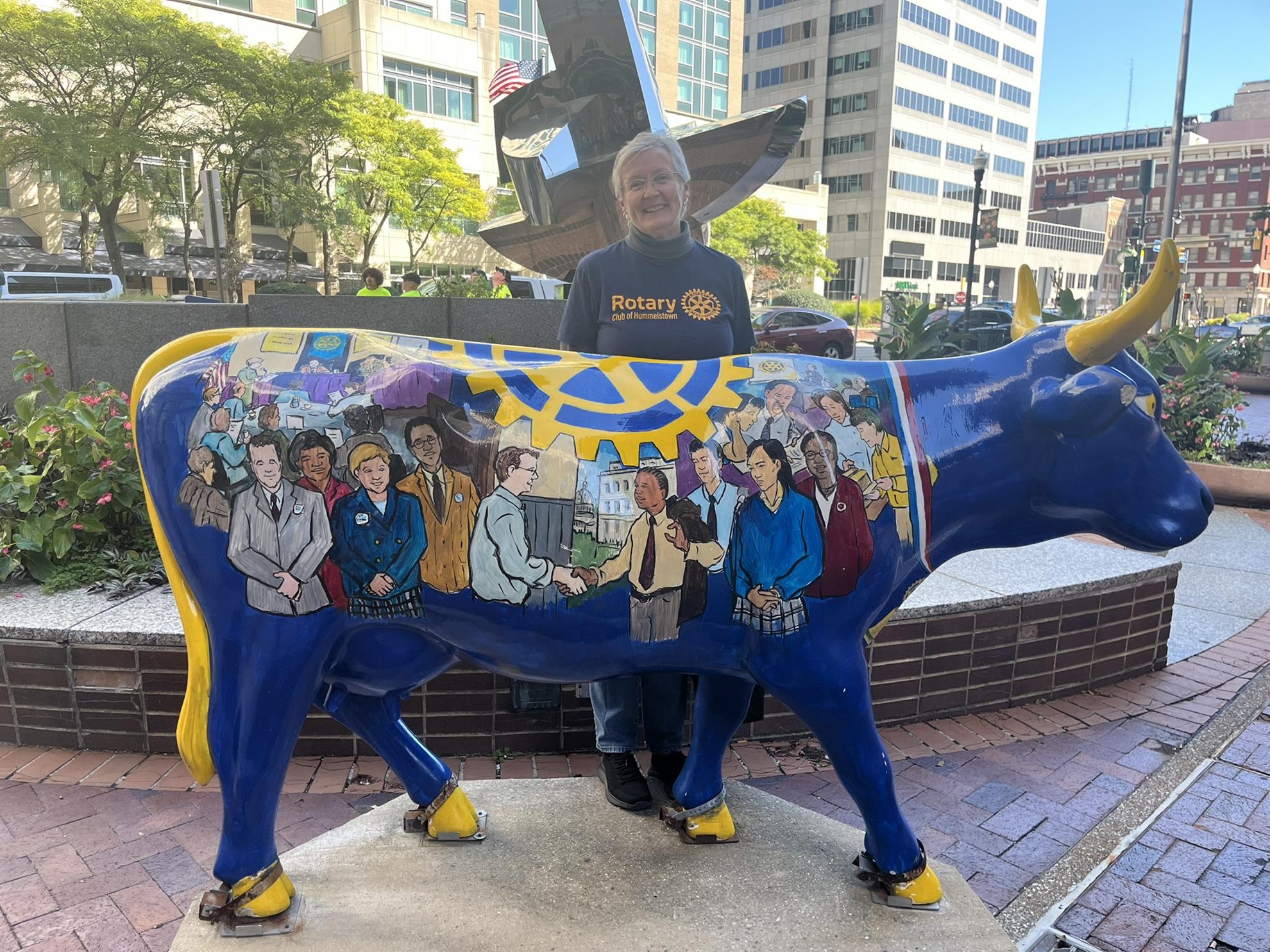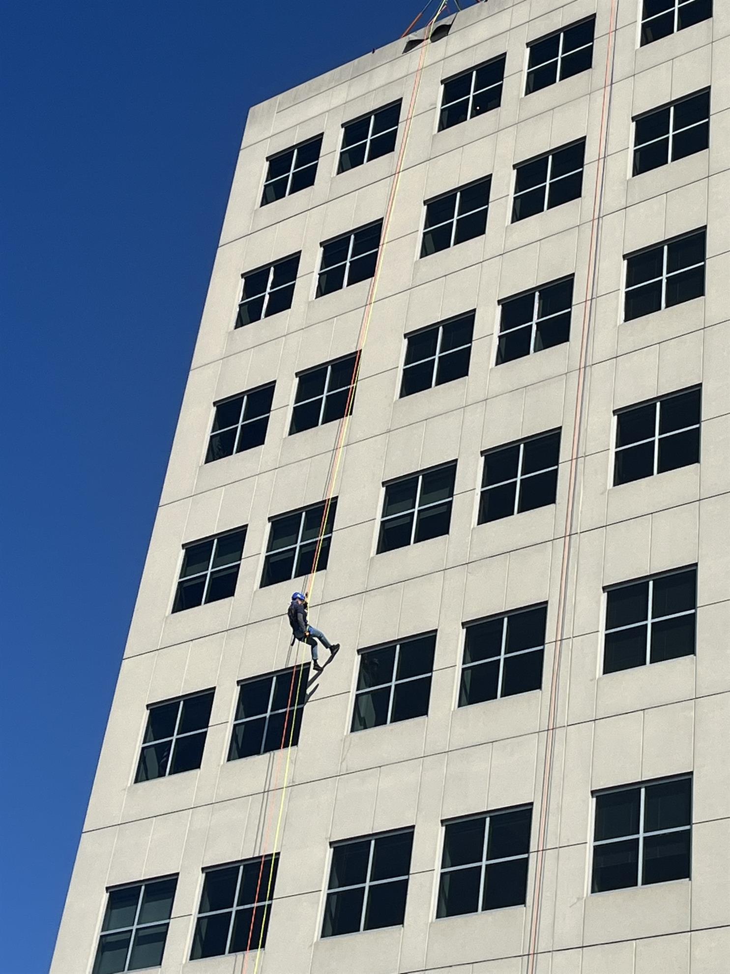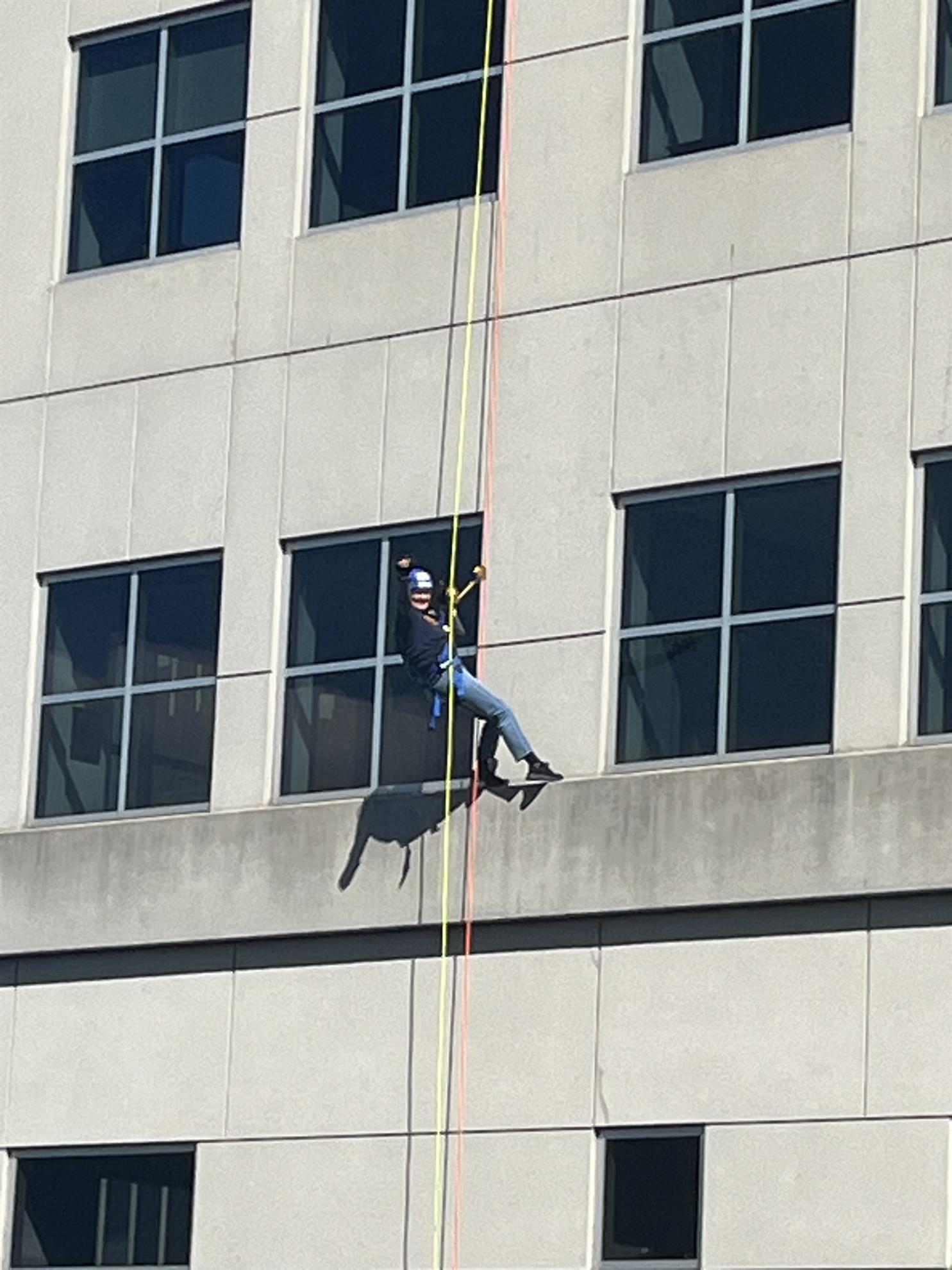 On her birthday, President Janet Coit demonstrated a remarkable level of courage and leadership by scaling an 18-story building in Harrisburg. Her actions truly exemplify the values of the Hummelstown Rotary and the spirit of "Service Above Self."