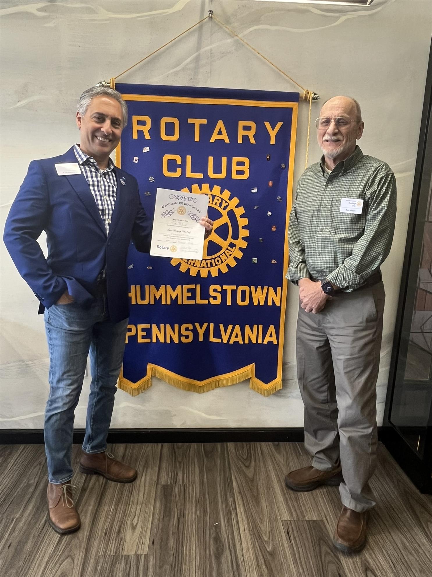 Congratulations to our newest Hummelstown Rotarian - Thomas Peluso with Members 1st, sponsored by Ron Hixon! Welcome Tom!
